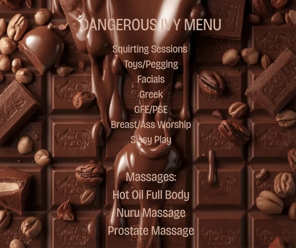 HELLO GENTLEMEN 💜 I'M DANGEROUS IVY I specialize in fetishes (BBJ, SQUIRTING,NURU MASSAGE, FACIALS)and the SENSUAL massages with a full menu to offer. Massage included in HHR+ I'm always in heels and lingerie ❤. I do not serve gentlemen under 30! My hygeine is A+ and yours should be as well. If not, please request cleaning supplies, I have them for you. ! FREAKY 🎥 SUBSCRIBE HERE! 👉🏿 ONLYFANS.COM/DANGIVY *FOLLOW ME HERE⬇* VERIFIED AND REVIEWED EM ID:400690 Twitter: @dangivy2 PREMIUM SNAP ONLY: Dangivy2 *OUTCALLS REQUIRES A $40DEPOSIT* NO CASHAPP